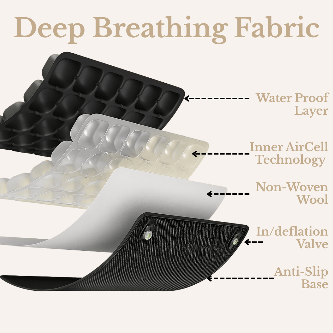Lifted grooves between each air cell let airflow underneath to prevent heat and sweat buildup. No sagging, no soreness, just cushioned comfort all flight.